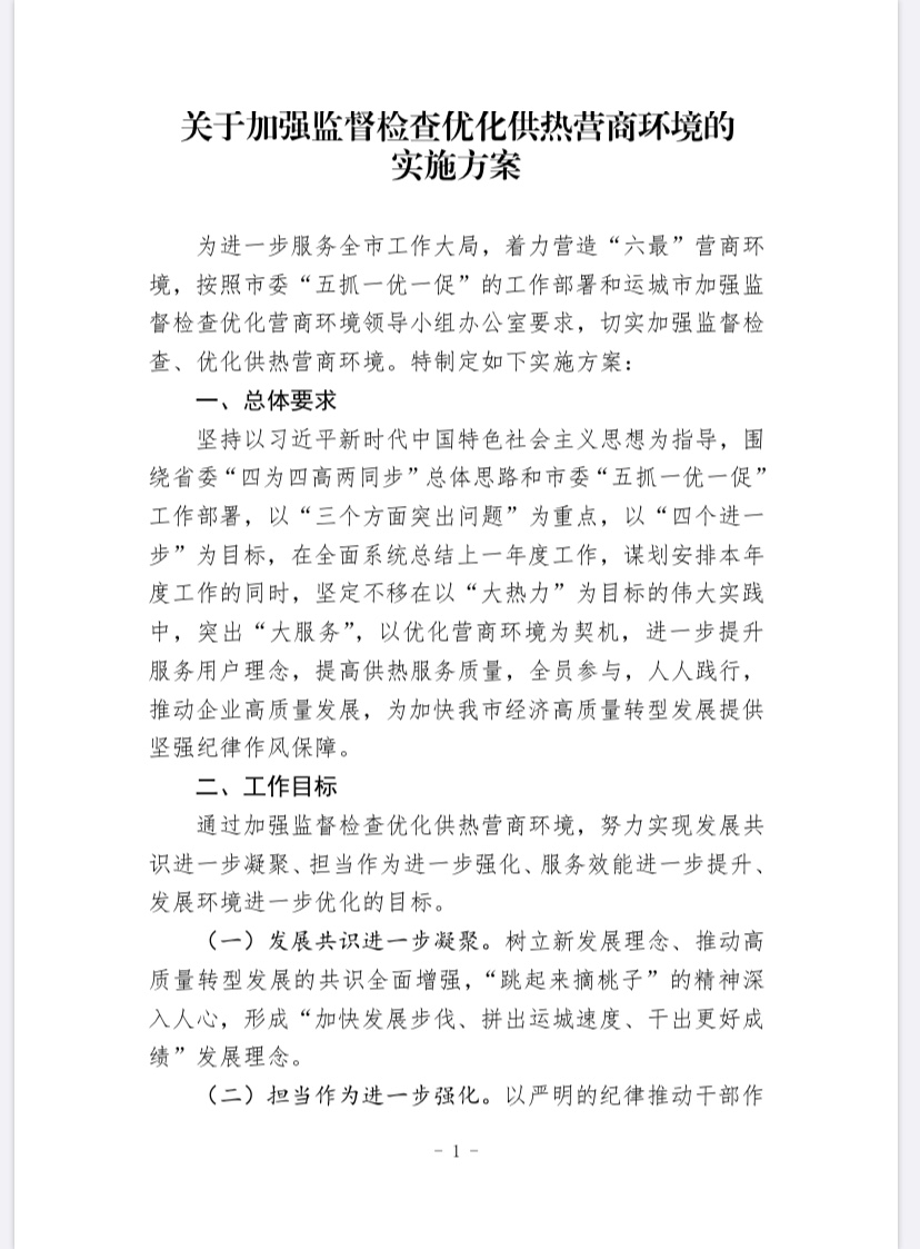 關(guān)于加強監(jiān)督檢查優(yōu)化供熱營商環(huán)境的實施方案