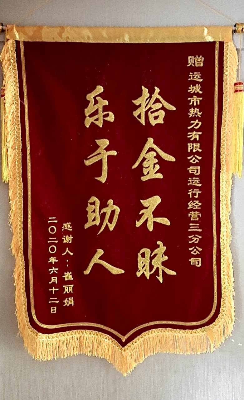 近日,家住理想城的崔女士送來(lái)的一封感謝信和一面錦旗,感謝我公司劉兆林同志拾金不昧的高尚品德,感謝公司培養(yǎng)了文明擔(dān)當(dāng)?shù)膬?yōu)秀員工。