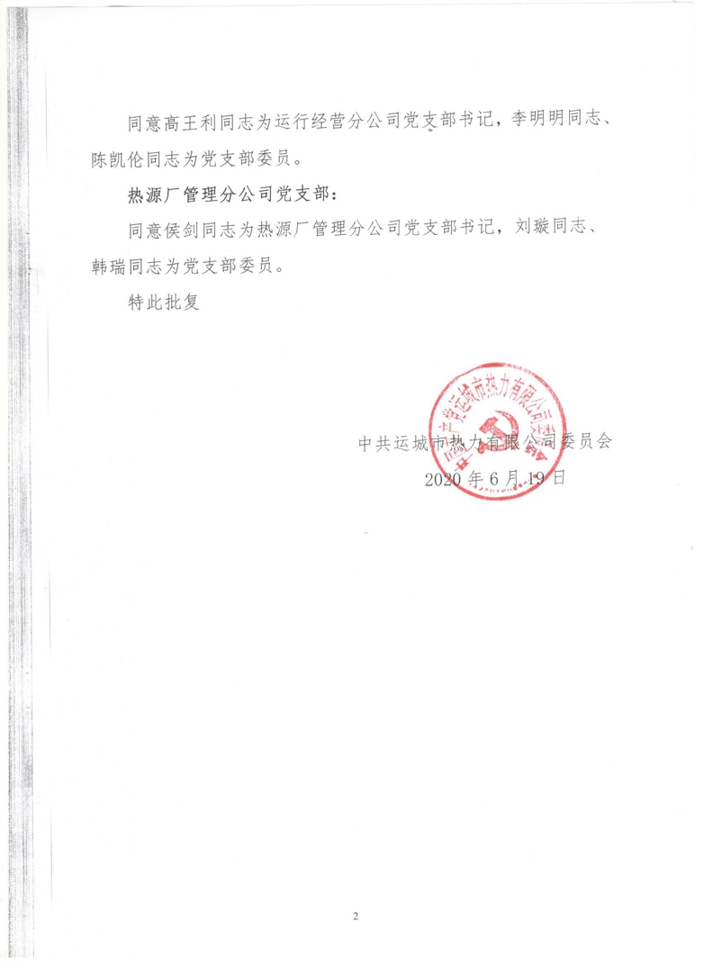 關(guān)于各黨支部換屆選舉結(jié)果的批復(fù)