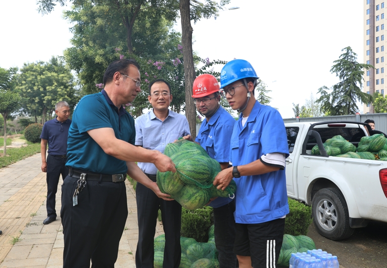 7月16日,盛夏初伏,公司黨委書記、董事長馬福森帶領(lǐng)班子成員深入工程工地、維保現(xiàn)場、管材生產(chǎn)一線,看望慰問奮戰(zhàn)在高溫下的一線員工們,向大家表示親切的慰問和崇高的敬意,同時(shí)給大家?guī)チ讼募痉朗罱禍仄,帶去公司黨委領(lǐng)導(dǎo)的關(guān)懷。