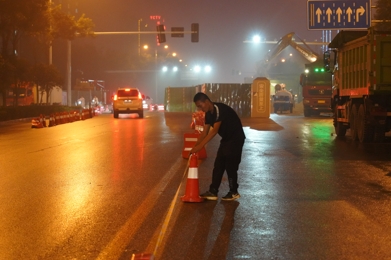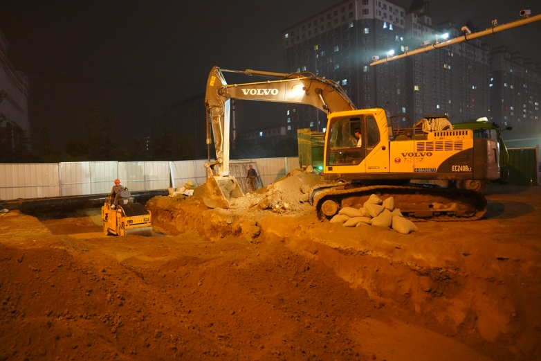 發(fā)令槍已經(jīng)打響,時(shí)不我待。在東部新區(qū)集中供熱項(xiàng)目部臨時(shí)黨支部統(tǒng)一部署下,一標(biāo)段現(xiàn)場(chǎng)管理組的同志協(xié)同全體參建單位,按照施工預(yù)案,各司其職,嚴(yán)陣以待,黨員干部沖鋒在先,兼顧現(xiàn)場(chǎng)管理和地面交通疏導(dǎo),大家以小時(shí)為單位,各道工序緊密銜接,有序推進(jìn),當(dāng)晚9時(shí)許,瀟瀟雨聲中,溝槽開挖,經(jīng)一夜持續(xù)機(jī)械加人工作業(yè)至周六13時(shí),溝槽成型,平整,碾壓,墊沙,下管,16時(shí)許,對(duì)管焊接至周日零時(shí),探傷進(jìn)場(chǎng),經(jīng)拍片研判合格后,2點(diǎn)開始保溫,4時(shí)許,主路段開始回填,分層碾壓,同時(shí)路口北側(cè)彎頭焊接、探傷、保溫緊張銜接,至周日晚11時(shí),清掃人員、水車,工人就位,準(zhǔn)備拆除圍欄,周一凌晨1點(diǎn),最后一道回填碾壓完成,清掃和沖洗路面……5時(shí)許,天色放亮,紅旗街韓信路口,路面清潔,交通恢復(fù)正常。